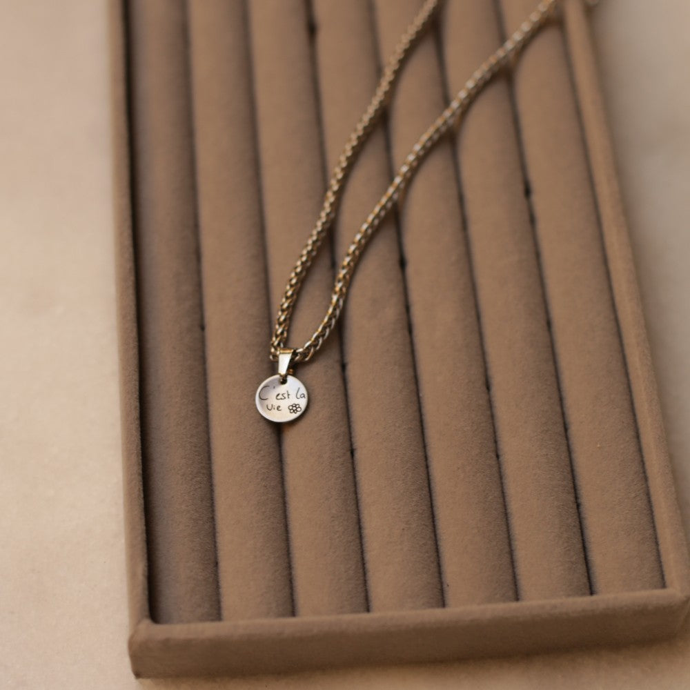 Met uiterst precieze lasertechnologie graveren we de handgeschreven tekst in het sieraad. Dit zorgt voor een haarscherp en duurzaam ontwerp dat niet vervaagt, zodat het voor altijd mooi blijft.