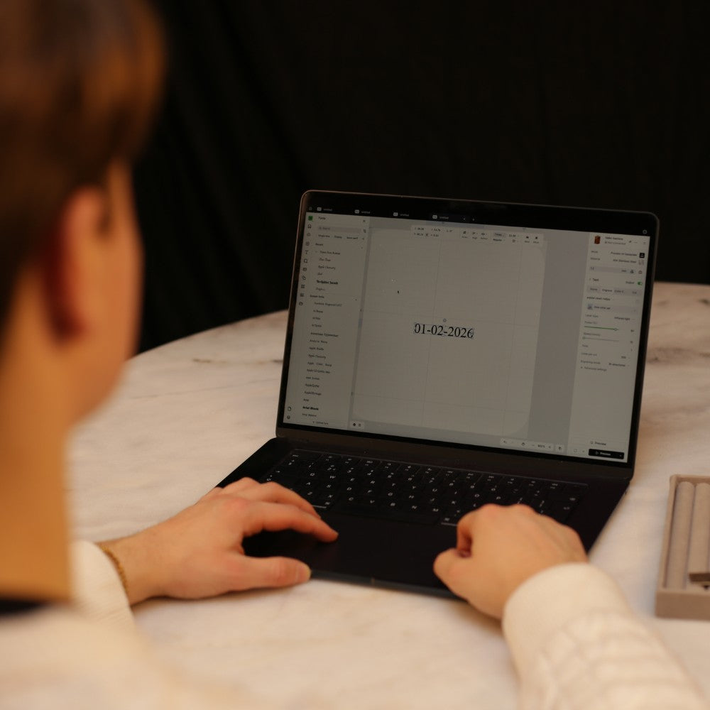 Met uiterst precieze lasertechnologie graveren we de tekst, datum of initialen in het sieraad. Dit zorgt voor een duurzaam ontwerp dat haarscherp blijft en niet vervaagt.