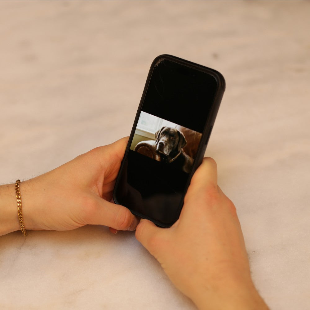 Kies je favoriete foto uit je galerij. Scherpe close-ups van mensen of huisdieren werken het beste. Let op: Zorg ervoor dat de foto scherp is. Landschappen of foto's die van veraf zijn genomen, zijn niet geschikt om te graveren.