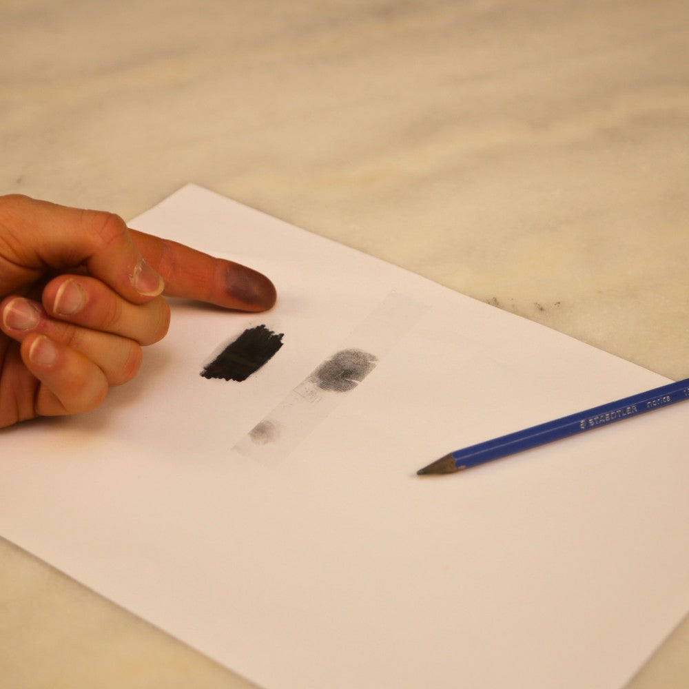 Een goede vingerafdruk maken is makkelijker dan je denkt. Kras met een potlood een vlak op een stuk papier. Wrijf met je vinger over het grafiet en plak vervolgens een stukje plakband op je vinger. Plak het plakband op een wit vel papier, maak er een foto van en upload deze! Onze gratis service: Lukt het niet om een goed resultaat te krijgen? Laat het ons weten, dan sturen we je gratis een professionele inktstrip toe.